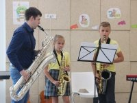Минулого тижня учні потішили нас своїми виступами на академконцерті й показали, якого рівня майстерності досягли у грі на музичних інструментах. Цікаво тут те, що діти навчились гри саме на уроках музики, які в 5 та 6 класах проходять нетрадиційно: кожна дитина має можливість навчитися грати на музичному інструменті за своїм вибором (на саксофоні, трубі, тромбоні, гітарі чи фортепіано). Протягом концерту звучали як всесвітньо відомі сучасні твори, так і народні та класичні; діти зовсім не хвилювалися і з задоволенням демонстрували свої вміння друзям та вчителям.