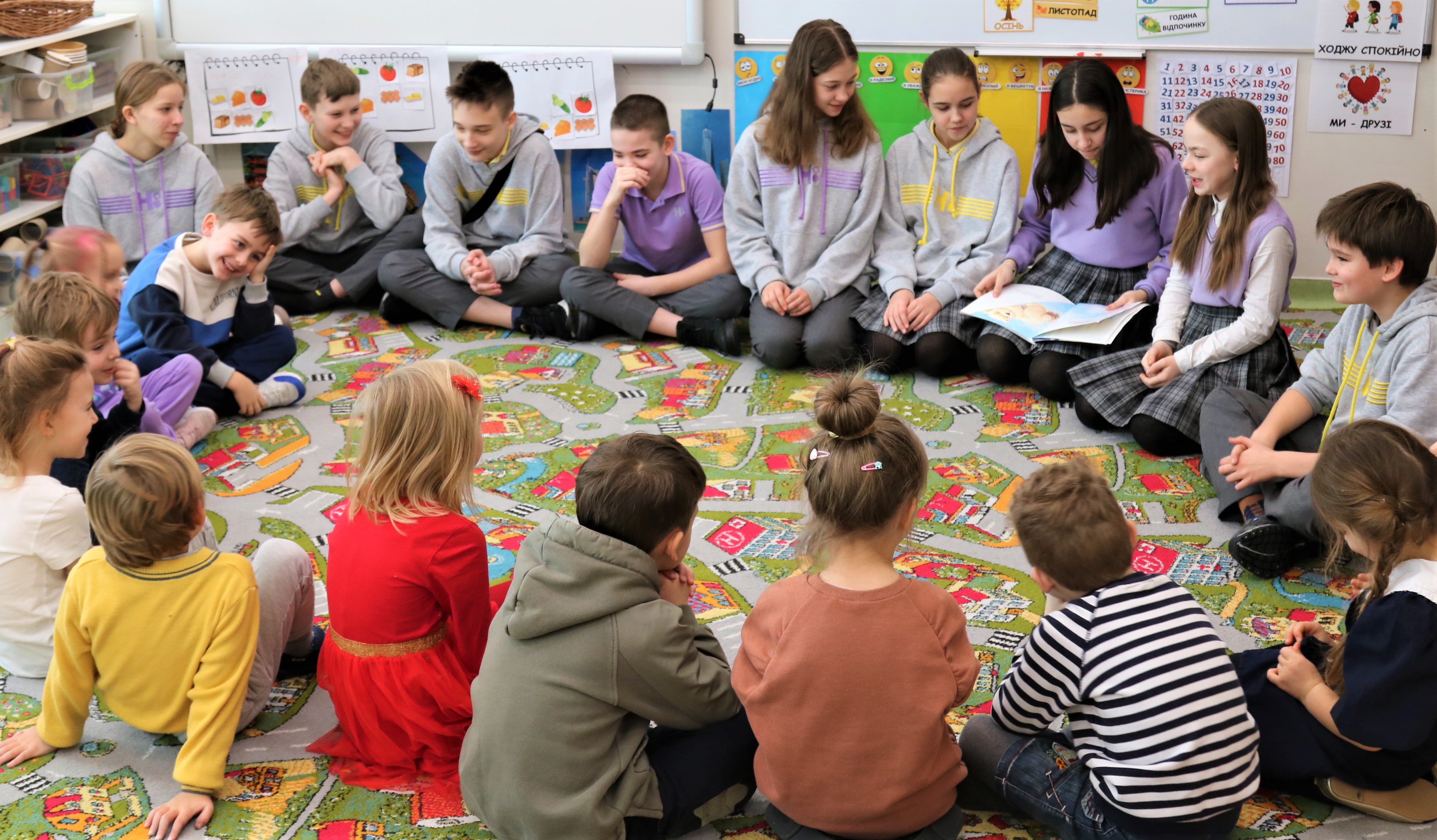 Наші старші учні обожнюють відвідувати молодших, щоб проводити час разом, навчаючись. А сьогодні наша школа традиційно долучилася до Всесвітнього дня читання вголос, який відзначають у 173 країнах світу.