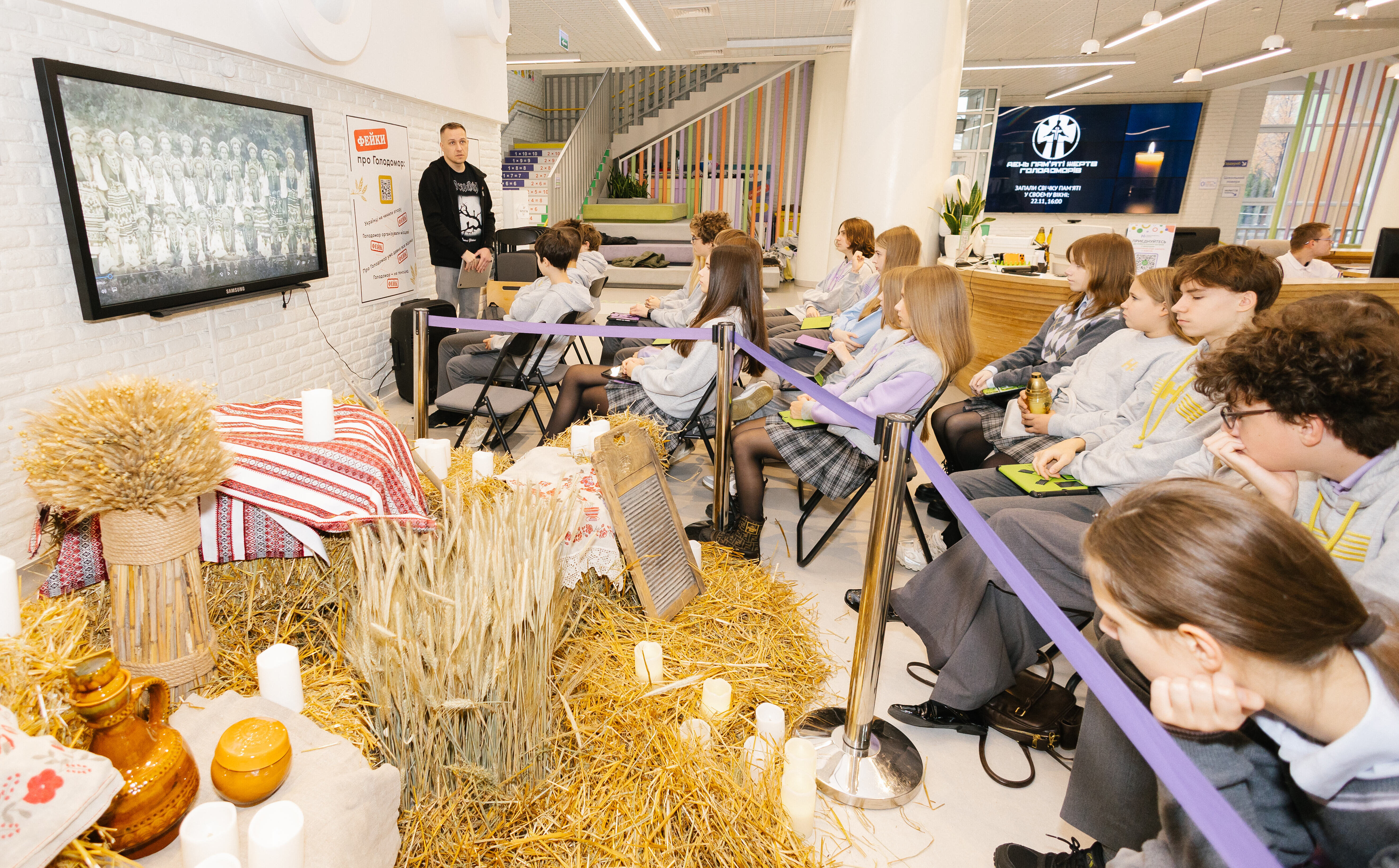 Протягом дня відбулися уроки історії та правознавства, присвячені Дню пам’яті жертв Голодоморів, а також відвідини тематичної інсталяції у холі школи. Учні знайомилися з книжками про Голодомор 1932–1933 років, говорили про те, як історія допомагає пам’ятати, працювали з емоційним спектром та розрізняли міфи і правду про трагедію. Окрему увагу приділили постатям незламних дисидентів – за матеріалами Українського інституту національної пам’яті.
