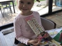 До Великодня поклали комплект дерев’яних писанок для розпису, шаблони масок-курчаток та листівок різного розміру для декорування. Діти розповідали, до кого в гості підуть і які чарівні листівки подарують рідним :)