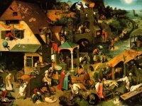 - На гуртку з театру діти розшифровували картину Пітера Брейгеля «Фламандські прислів‘я», в якій закодовані 112 прислів‘їв. А потім складали історії про деяких з персонажів (хто вони, ким є один одному, мета їхніх дій, які перешкоди долають, як змінюються впродовж історії, який месседж несе історія, чим завершується).