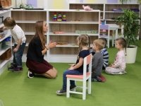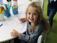 Перш за все — це весело! Дошкільнята тільки починають вчитися, тож найкраще вони запам'ятовують те, що їх зацікавить. Тому під час уроку діти шукають у вазоні гусінь (і одразу дізнаються, як вона називається англійською!), співають веселі пісні про те, який у них сьогодні настрій, а потім хапають олівці і закріплюють вивчені назви кольорів! Отак, мало-помалу, вони запам'ятовують все більше англійських слів та звикають до звучання мови.