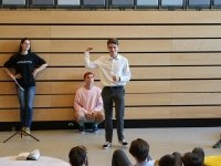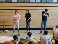 Ця вистава проходила на рівні імпровізації, бо, мабуть, акторів завчасно не попередили, що буде тільки два уроки на те, щоб вони виступили, і їм довелось скорочувати та прискорювати свою виставу.