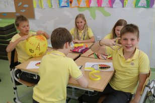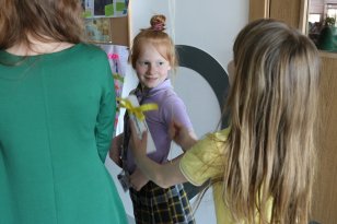На честь тематичного дня учні 4-А класу дізнавалися, наскільки щасливими є мешканці Новопечерської школи! В лабораторії Щастя (Happy Lab) школярі проводили дослідження: опитували учнів різних вікових груп, вчителів та батьків, і на основі отриманих даних створювали власну формулу щастя, в тому числі й свого. Ще вони вчились помічати хороше одне в одного та підтримувати це, створюючи щасливі портрети один одного. Нарешті, учні виготовили Пасхальні листівки-щасливки та разом з щасливими кульками дарували їх тим, хто здавався їм хоч трішки сумними. І тоді під жовтими кульками розквітали нові усмішки :)