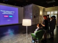 Злата Бєдарєва, 10 клас: Поїздка була цікавою, розповідь ексурсовода вдало доповнювала експозицію: маловідома цікава інформація, спростування фактів. Найбільше мені сподобалася візуалізація різних періодів життя поетеси, а особливо частина про театр та особисте життя Лесі Українки. Трохи не вистачало динамічності в екскурсії. На виході з Українського дому мою увагу привернув робот-бібліотека “Лукаш”. Було б класно, якби такі з’явилися в бібліотеках та книжкових магазинах Києва.
