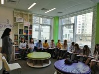 Щоб краще розуміти, як акторам вдається приміряти на себе різні образи, учні зустрілися з Олександрою Рудніцькою, акторкою театру та кіно, акторкою Київського класичного художнього альтернативного театру, старшою викладачкою кафедри режисури та акторської майстерності Національної академії керівних кадрів культури і мистецтв. Завдяки її досвіду учням вдалось дізнатися багато лайфхаків щодо розвитку навичок артикуляції, тренування міміки та жестів, а ще всі разом вони виконали практичні вправи з акторської майстерності.