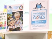 Книги на ній підібрані відповідно до 17 Глобальних Цілей ООН. Кожна книга має своє маркування та QR код для того, щоб учням було легко знайти цікаву їм тему.