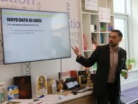 Як бути пильними та не забувати берегти свої дані у соцмережах учням 9 класу Blended Program (нашої українсько-канадської інтегрованої програми) розповів запрошений гість — Робін Сантуччі. Пан Робін понад 15 років працював у Кремнієвій долині, і в його портфоліо знайшли своє місце такі компанії, як Adobe, Apple тощо. Протягом річного відпочинку він переїхав до Києва — каже, що тут йому подобається :)