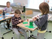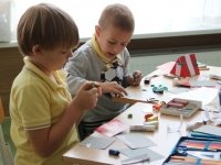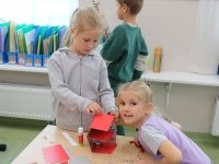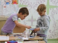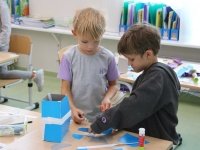 А після завершення настає час для будівництва. Цікаво тут ще й те, що ескізи кожен першокласник малював сам, а модель діти будували вже в парі. А це означало, що спочатку потрібно домовитись, чий ескіз піде в хід, а якщо вибрати неможливо (такі вони обидва гарні!), то потрібно створити новий ескіз у парі, використавши найкращі ідеї кожного.