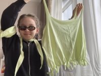 А якщо ми уже зробили так багато різних моделей еко-сумок, то це вже ціла колекція. І п'ятикласниця подає ідею влаштувати показ мод на камеру. Усі моделі виходять зі своїми сумками та коментують їх. Це просто неймовірне явище ![]()
