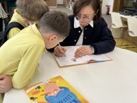 Пані Катя презентувала дітям збірку чудернацьких та веселих історій «Казки навиворіт», розповіла про те, як дивакуваті небилиці здатні врятувати найпоганіший день та таємну силу, яка є в кожного з нас. Діті мали змогу поставити будь-яке питання пані Каті та отримати книжку з її автографом.