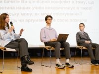 Напередодні було проведено дебати між трьома кандидатами на цю посаду. Сильним лідером для сильної школи – Михайлом Ісуповим, лідеркою сердець – Марією Головащенко та представником розумного лідерства – Володимиром Кузьмієм.