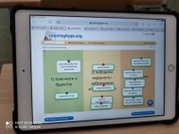 Учні у форматі змішаного навчання слухали веселу реп-пісеньку про Цілі сталого розвитку, висловлювали свої думки у Mentimetr та під час інтерактивного завдання, вправлялись у розв'язуванні ребусів та завдань у LearningApps. Цікаво, що урок відбувався одночасно і офлайн, і онлайн, адже до нього підключались з дому і діти, які перебувають на самоізоляції.