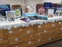 У Новопечерській бібліотеці панує святкова атмосфера: тут з'явилася цікава книжкова виставка «Книжкова заметіль», яскраві інсталяції, мультфільми, які переносять читачів у час чарівної казки, а також бібліотечні уроки «Стежками зимових казок», в які поринули учні початкової школи.