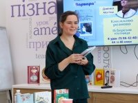 - На зустрічі з учнями середньої школи письменниця Оля Русіна поділилася історією написання книги "Абрикоси зацвітають уночі" та відповіла на всі запитання дітей.